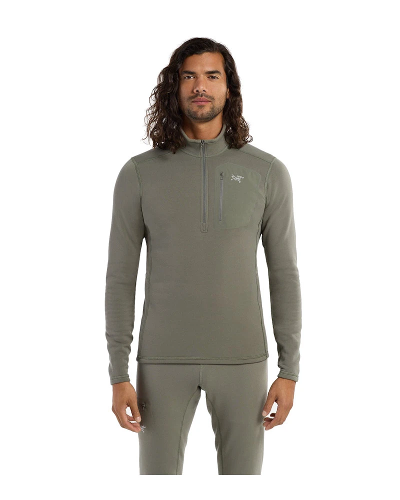 The Rho Heavyweight – Arc’teryx’s warmest base layer top – is made for cold days and mixed output. On the move, the Polartec® Power Stretch® Pro stretches for outstanding freedom of movement. During rest phases – or when it gets really cold – the fleece’s soft brushed interior traps heat to keep you warm. The fleece’s durable nylon outer has a smooth face for comfort under layers, the tall collar extends warmth, and the deep front zipper aids heat dump and makes on-and-off easier.