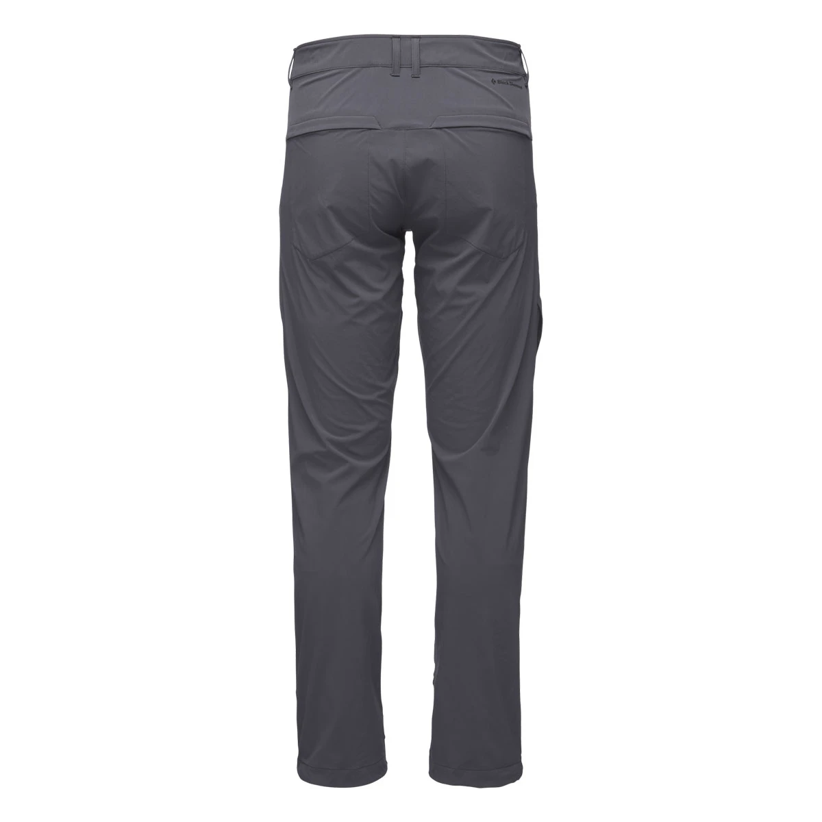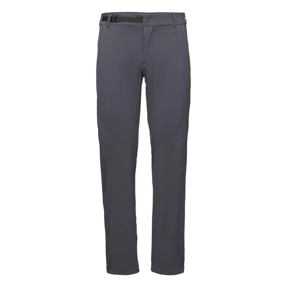 Stretchy, highly technical and extremely packable, the Black Diamond men’s Alpine Light Pants are the go-to layer for windy ridge scrambles and fast climbs and hikes in the mountains. An ultralight wind barrier, the Black Diamond Alpine Light Pants are the three-season solution for light, packable weather protection. Designed with a single-weave, four-way stretch fabric, they pack down so you can shove them deep into the recesses of your pack, and the DWR treated finish gives you a layer of shelter when light precip rolls in. Two rear drop pockets and zip thigh pockets stash essentials, and a ladder lock belt with belt loops and adjustable cuffs dial in the fit