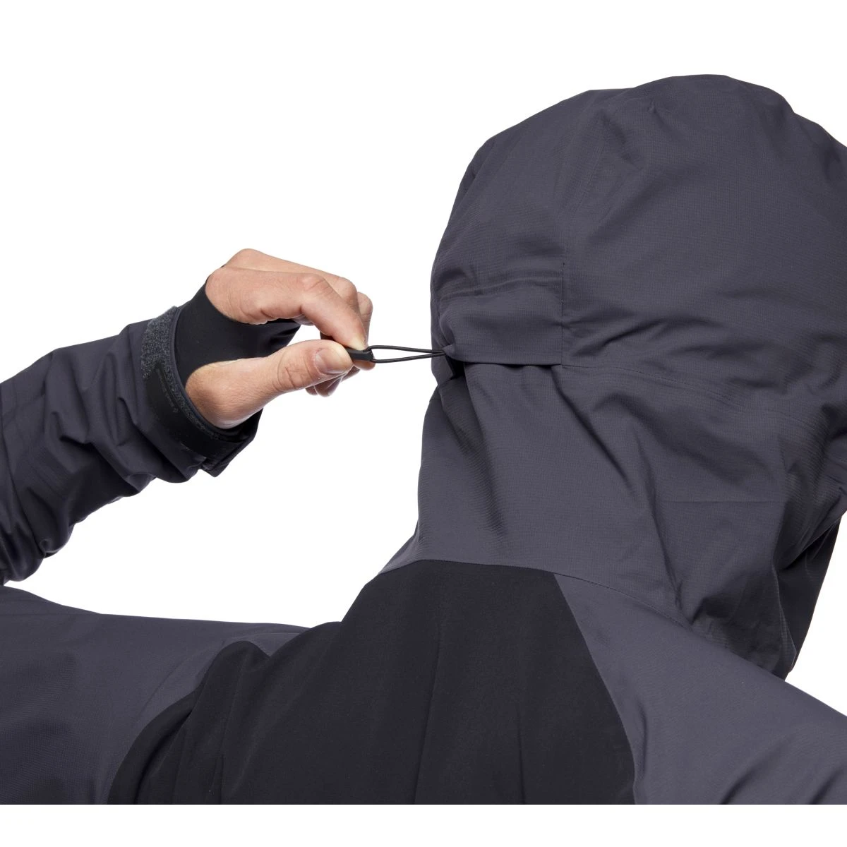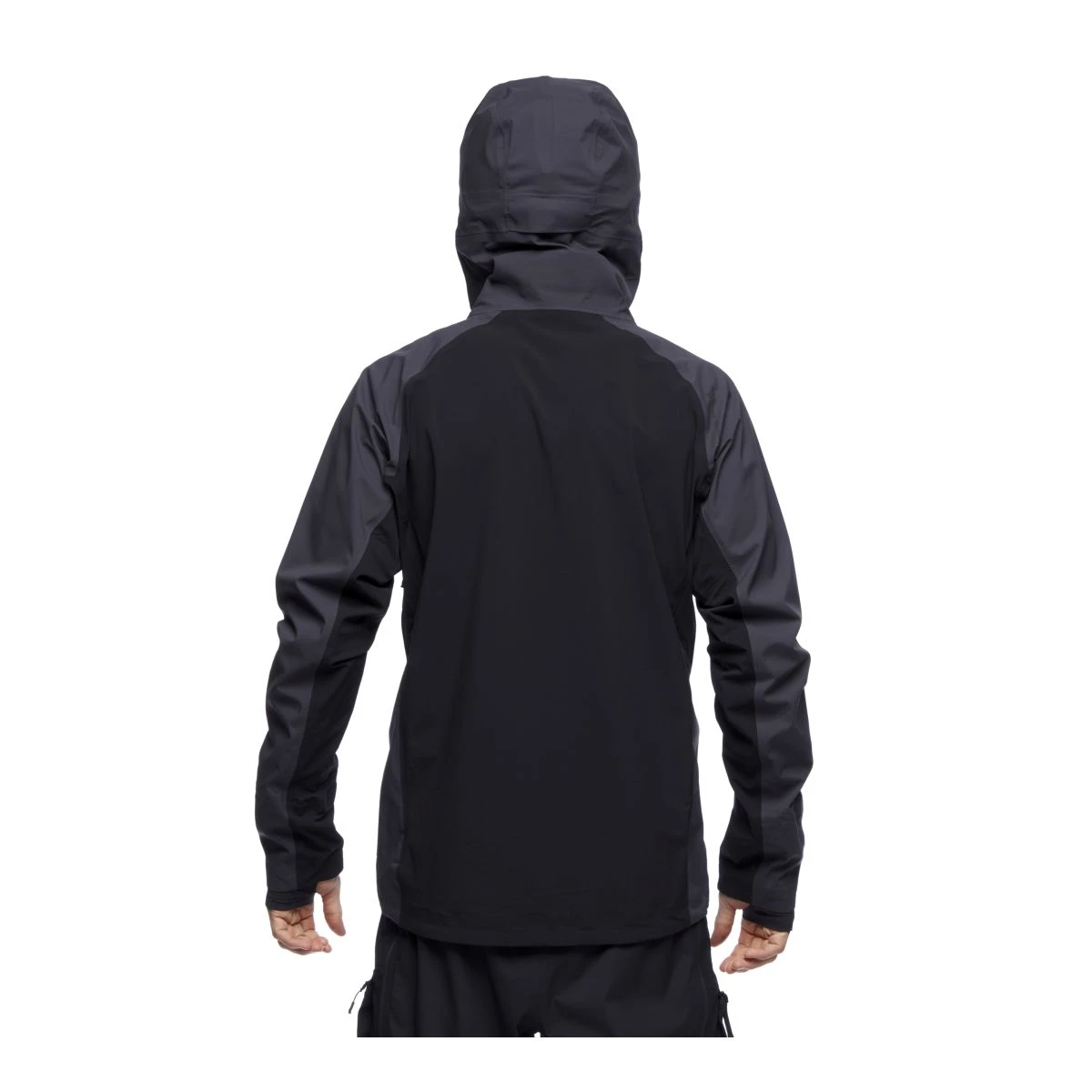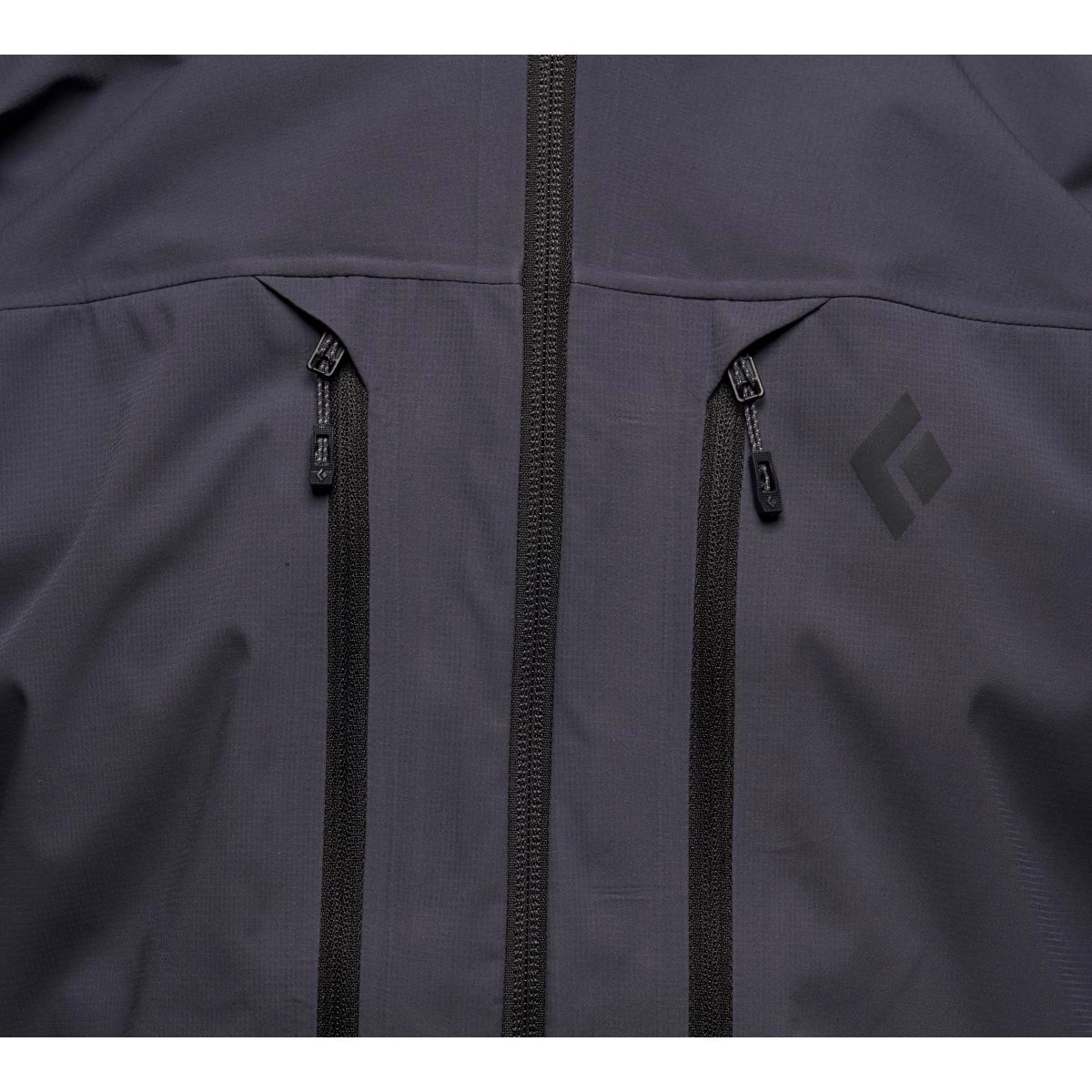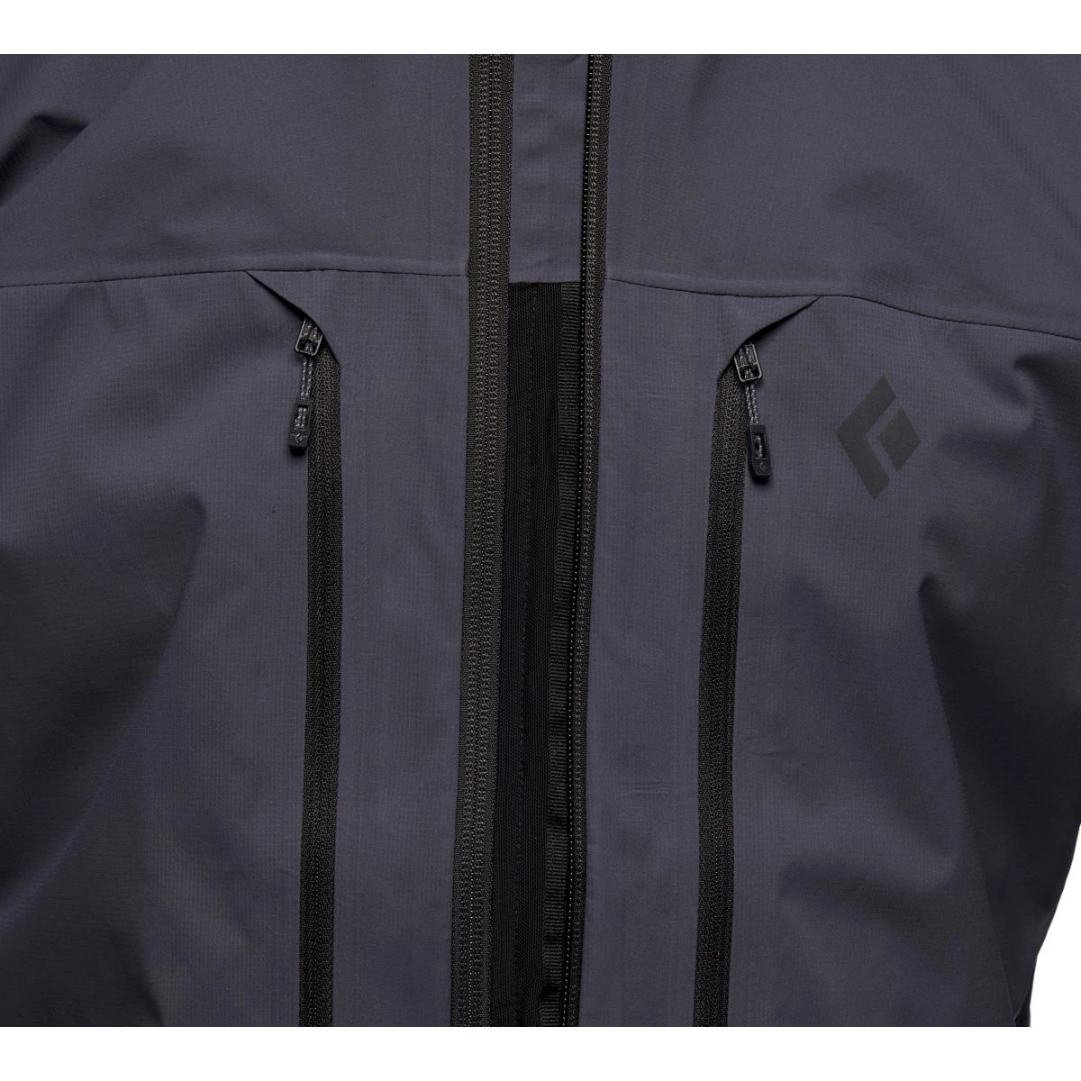 Black Diamond’s backcountry shell engineered to provide protection from the storm while remaining breathable on the uphill skin, the Dawn Patrol Hybrid Shell features a breathable softshell fabric in key placements for thermal regulation, while the chest, shoulders and hood remain impenetrable thanks to propriety BD.dry™ waterproof/breathable solution. All fabric is treated with GTT’s Empel PFC-Free finish, an environmentally-friendly DWR that’s superior in durability and performance. Add 4-way stretch for mobility and this shell keeps you hustling on the skin track while sending it on the way down. An innovative center front dual zipper features a built-in mesh panel for venting on the climb, and the perforated panel on the collar allows you to breath freely while protecting your face from the brisk air. The Dawn Patrol Hybrid comes with two harness-compatible chest pockets that hold skins, an internal media pocket and a ski-helmet compatible hood. Velcro cuffs are combined with a lightweight wrist gaiter for ultimate protection.