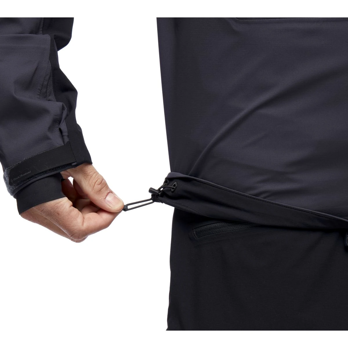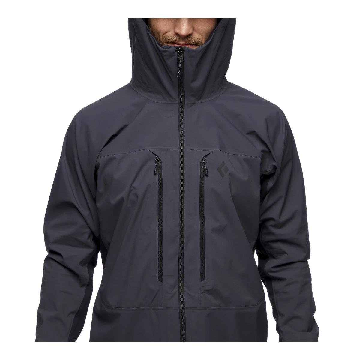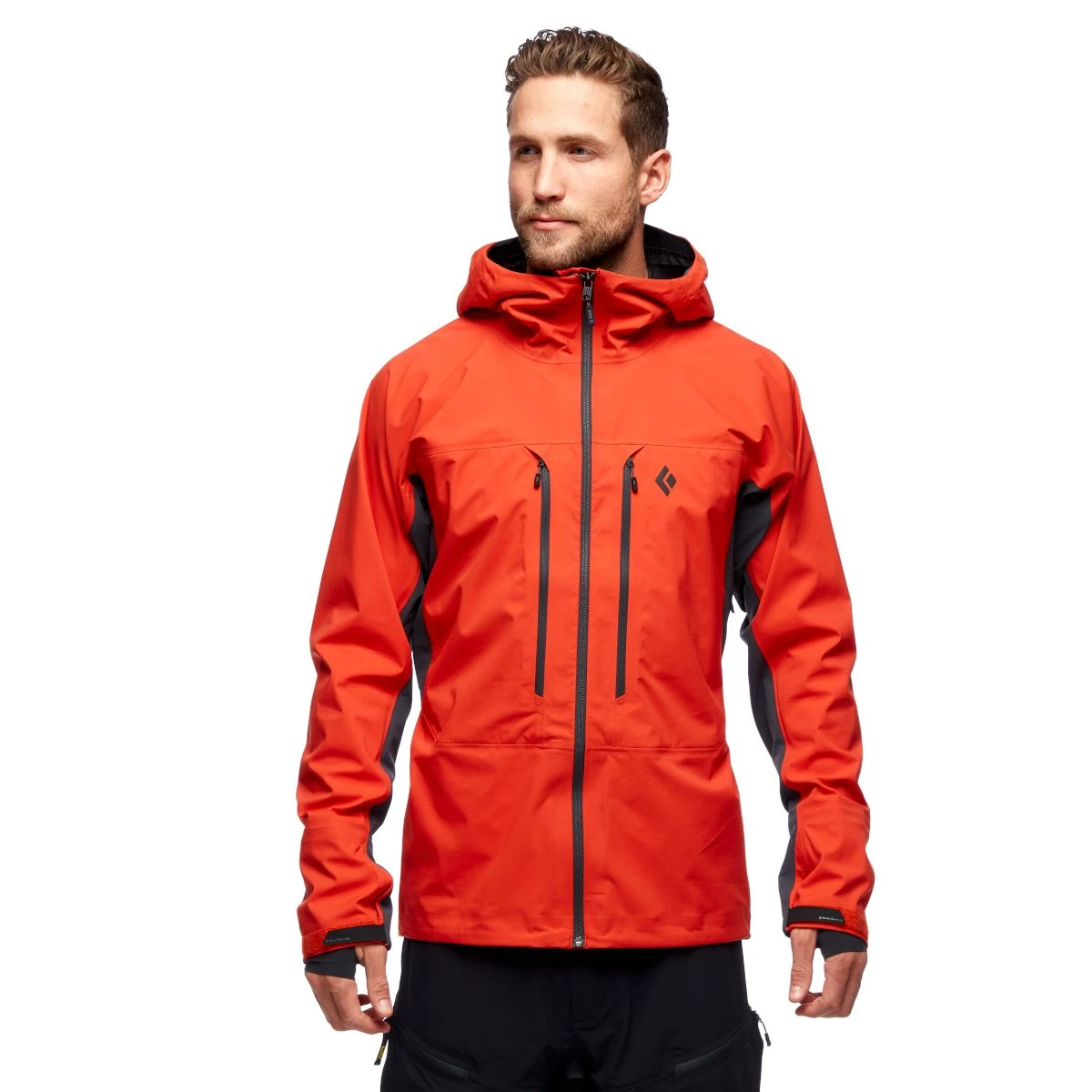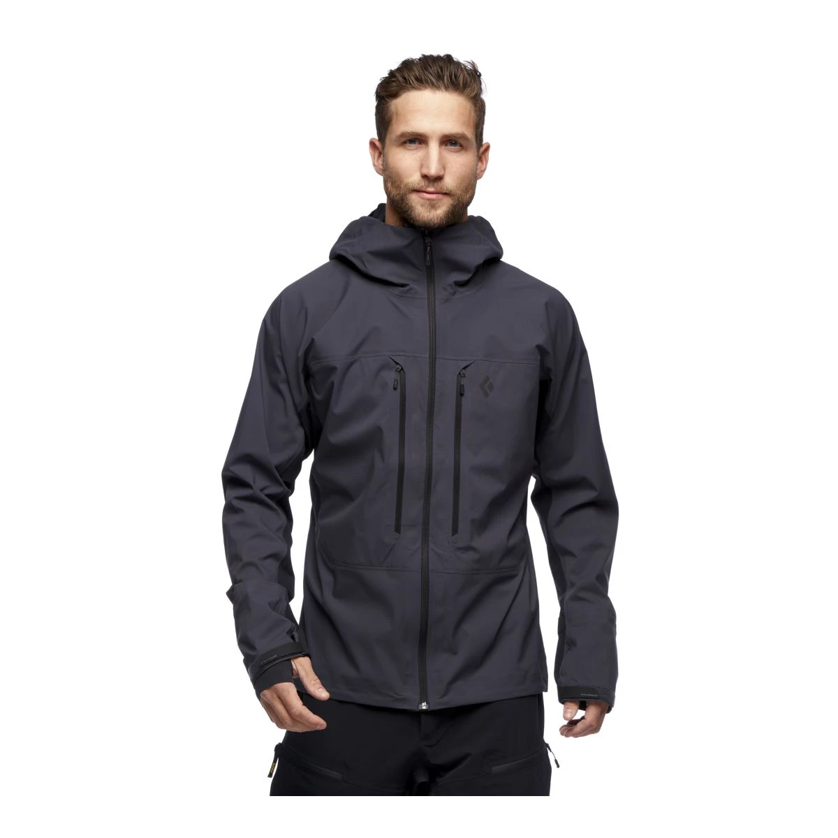 Black Diamond’s backcountry shell engineered to provide protection from the storm while remaining breathable on the uphill skin, the Dawn Patrol Hybrid Shell features a breathable softshell fabric in key placements for thermal regulation, while the chest, shoulders and hood remain impenetrable thanks to propriety BD.dry™ waterproof/breathable solution. All fabric is treated with GTT’s Empel PFC-Free finish, an environmentally-friendly DWR that’s superior in durability and performance. Add 4-way stretch for mobility and this shell keeps you hustling on the skin track while sending it on the way down. An innovative center front dual zipper features a built-in mesh panel for venting on the climb, and the perforated panel on the collar allows you to breath freely while protecting your face from the brisk air. The Dawn Patrol Hybrid comes with two harness-compatible chest pockets that hold skins, an internal media pocket and a ski-helmet compatible hood. Velcro cuffs are combined with a lightweight wrist gaiter for ultimate protection.