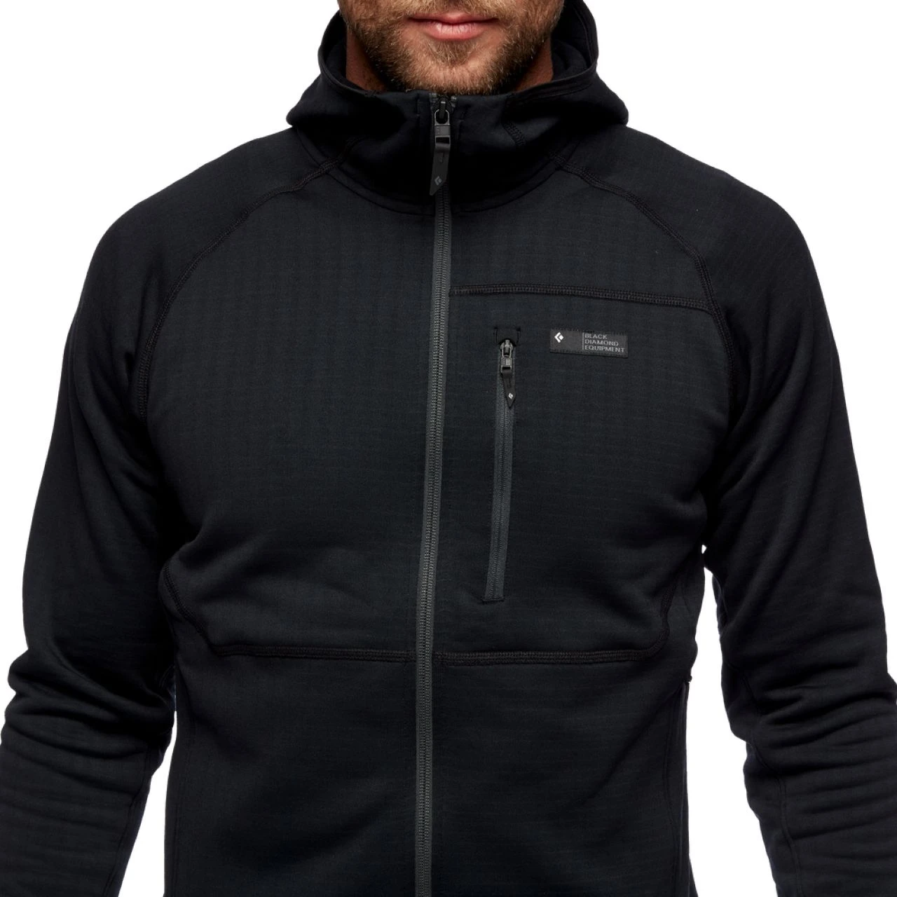 From summer rock routes in the Sierra to tedious ice leads in the heart of winter, the Black Diamond Factor Hoody delivers four-season, technical midlayer performance in a light, stretchy and quick-drying package. The hoody’s close-fitting, under-the helmet hood helps retain warmth on chilly approach pitches and lets you leave the beanie at home, while zippered hand and chest pockets secure small on-route essentials.