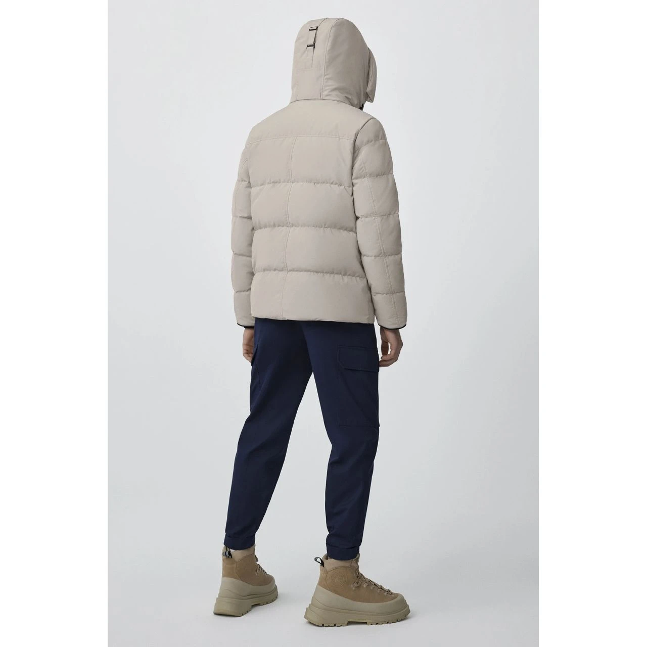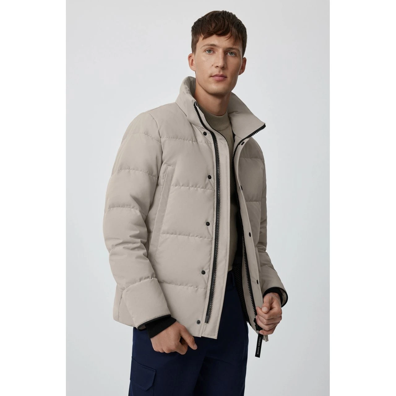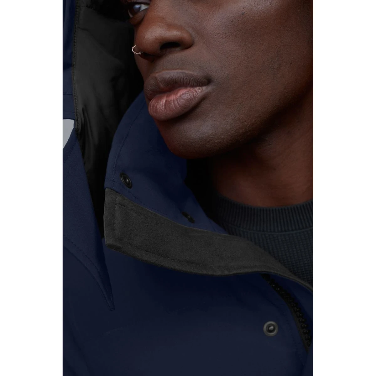 The slim-fitting Canada Goose men’s Wyndham Parka maximizes warmth with a heavy-duty two-way zipper and soft ribbed knit cuffs to block cold air out. A removable down-filled hood is adjustable and adds element protection.