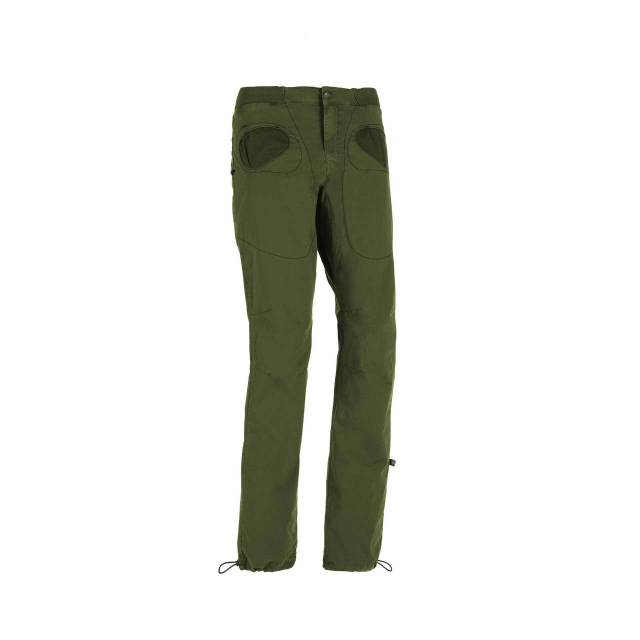 The E9 Rondo Slim is an urban climbing trouser with eco-friendly organic cotton-blend poplin fabric. Contrast-fabric pockets. Embroidery on the back. Adjustable cuffs and waist. Brush holders on both sides. With a slim fit, this pant is stretchy and breathable. Made in Italy.