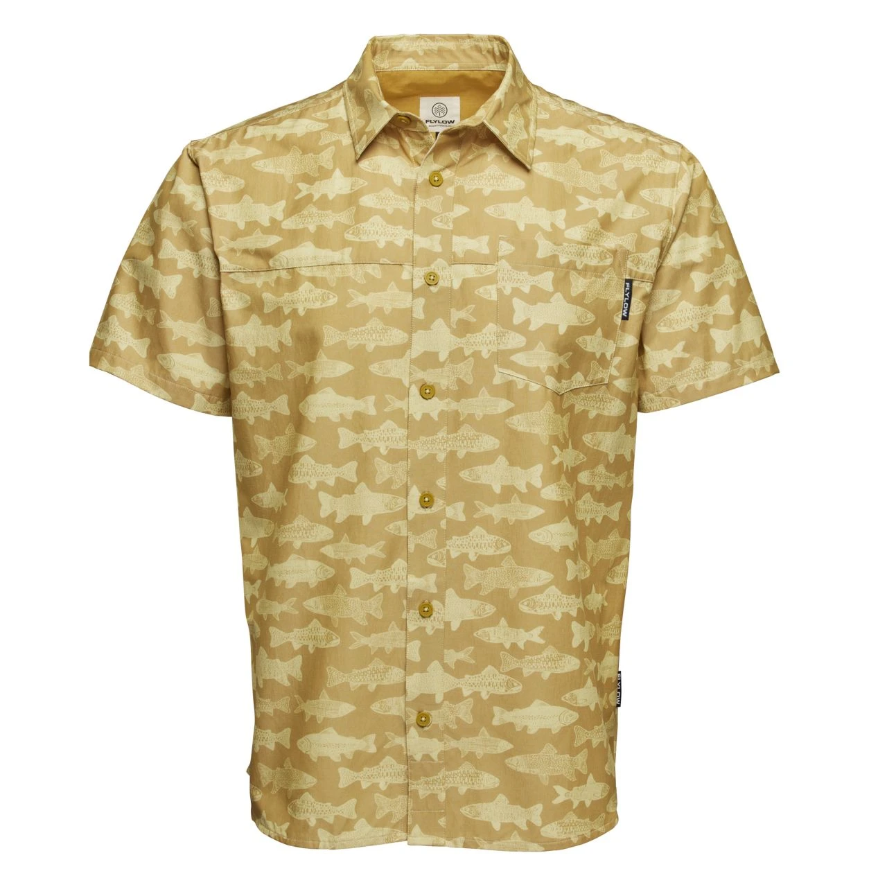 You like to fish? Meet your new favorite shirt: The Wild Child, a short-sleeved, quick dry button-up in a fun-loving print.