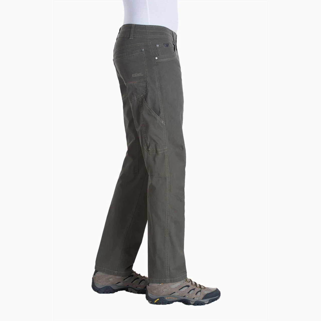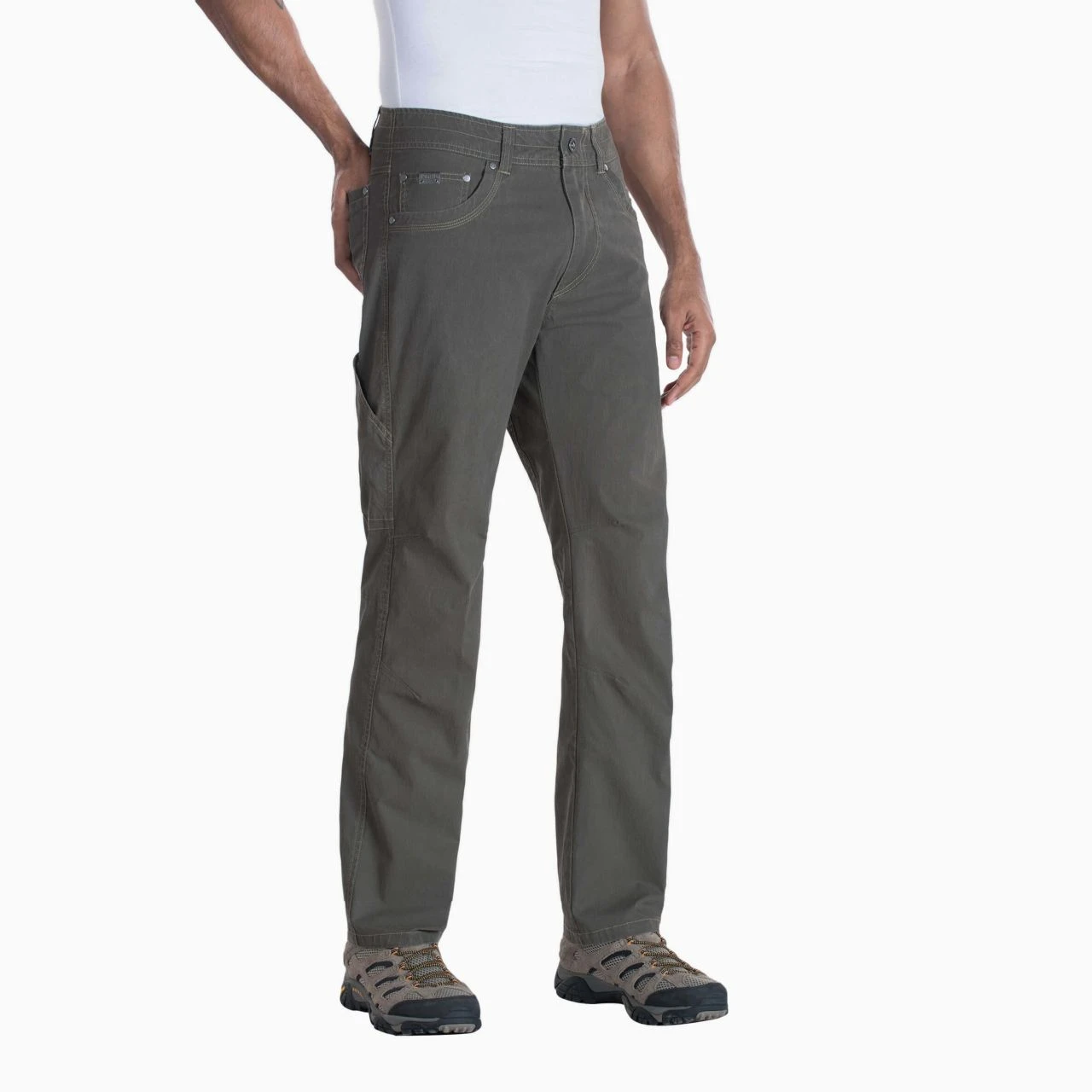 The Revolvr Pant is cut from ÜberKÜHL® STRETCH fabric, which combines the lightweight comfort and breathability of cotton, the durability of nylon, and the flexibility of spandex. The Full Fit features a full seat and thigh for a more relaxed fit, and the waistband is slightly peached for increased wicking performance, faster drying time and unmatched comfort. The high quality, double dye Vintage Patina process naturally fades with age, exposure and wash for a vintage look. Free Ryde™ waist, articulated knee, and gusseted crotch allow true freedom of movement. Sit easy and worry free with your wallet and phone secured in 3D and drop-in stealth pockets so comfortable you’ll forget they’re there.
