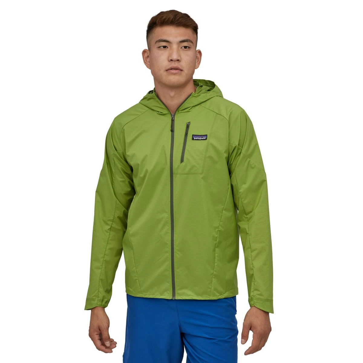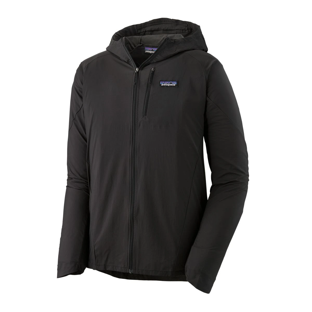Flurries of snow, gusts of wind, continual sun-cloud cycles—spring can’t make up its mind. For those who run far in unpredictable conditions, the Patagonia Houdini Air strikes a balance between the more weather-resistant Houdini and the ultralight, super-breathable Airshed. The ultralight double-weave nylon/polyester fabric (partially recycled) has outstanding breathability along with a textured interior that enhances airflow and next-to-skin comfort when sweating. Minimalist detailing includes low-bulk cuffs and hem, single-pull adjustable hood and a zippered chest pocket that converts to a stuff sack with a reinforced carabiner clip-in loop. Reflective P-6 logo on left chest and a DWR (durable water repellent) finish.