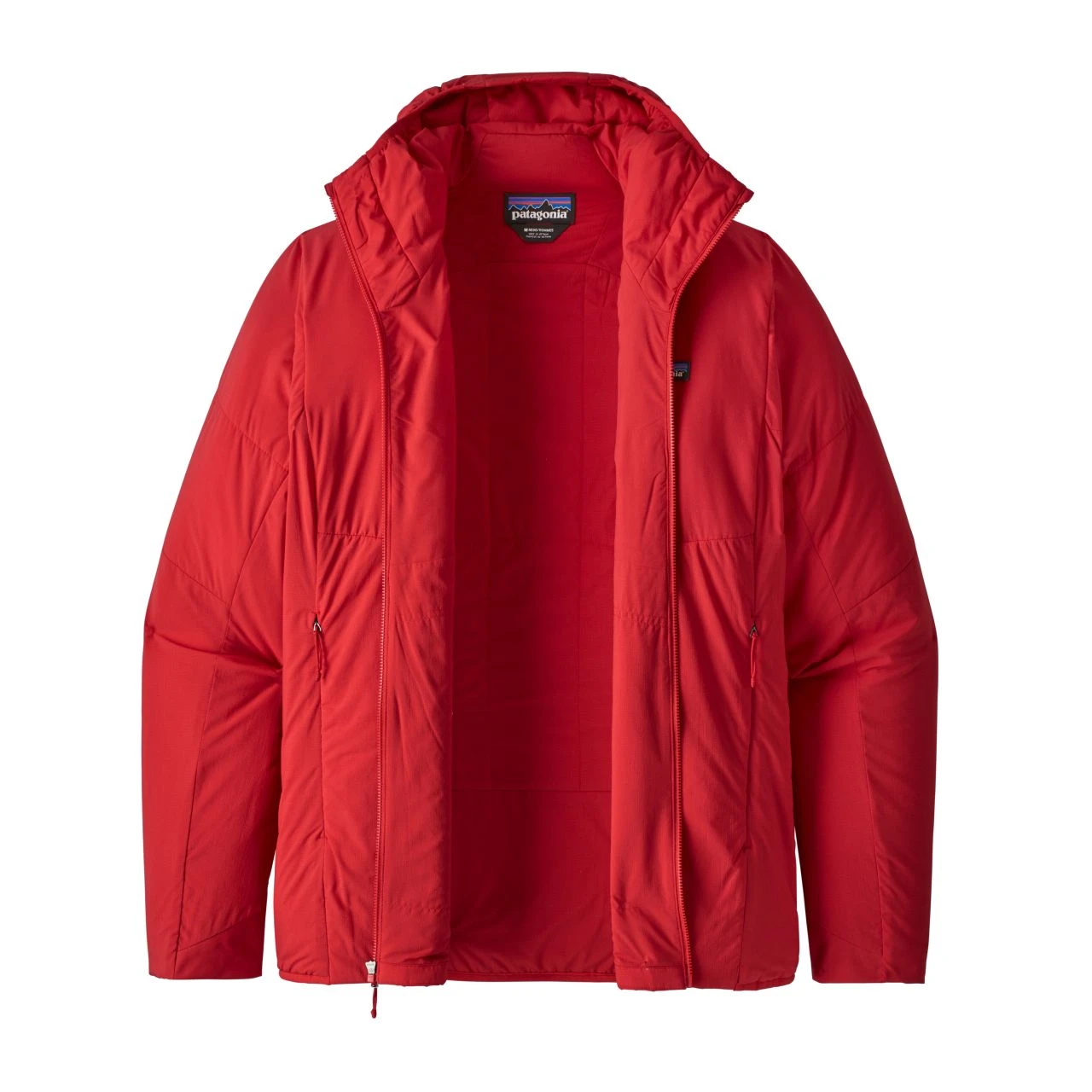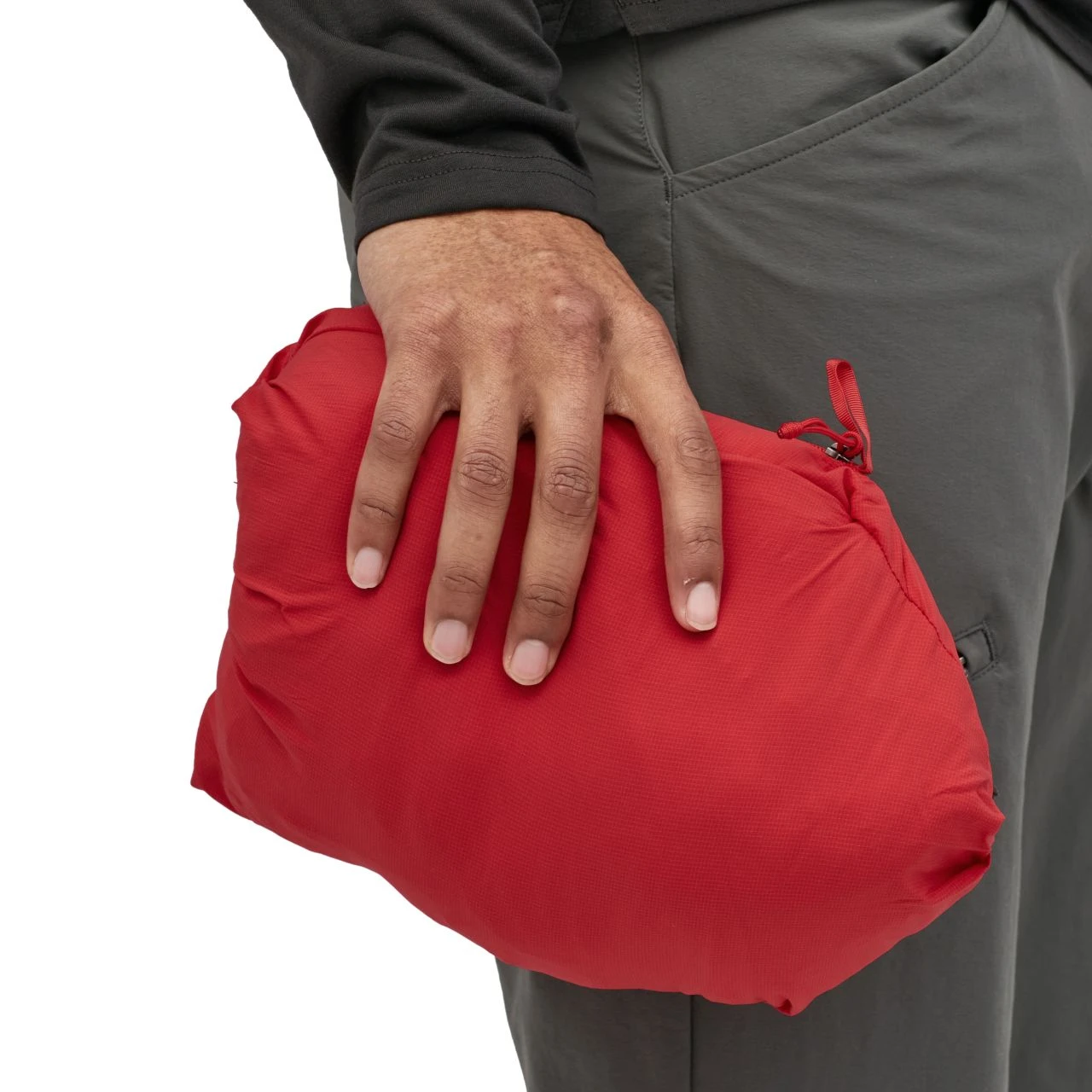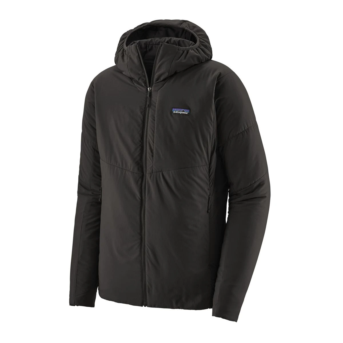 – Two handwarmer pockets and a left-chest pocket are zippered, low-profile and low-bulk to wear comfortably with a harness or pack; hoody self-stuffs into left-chest pocket