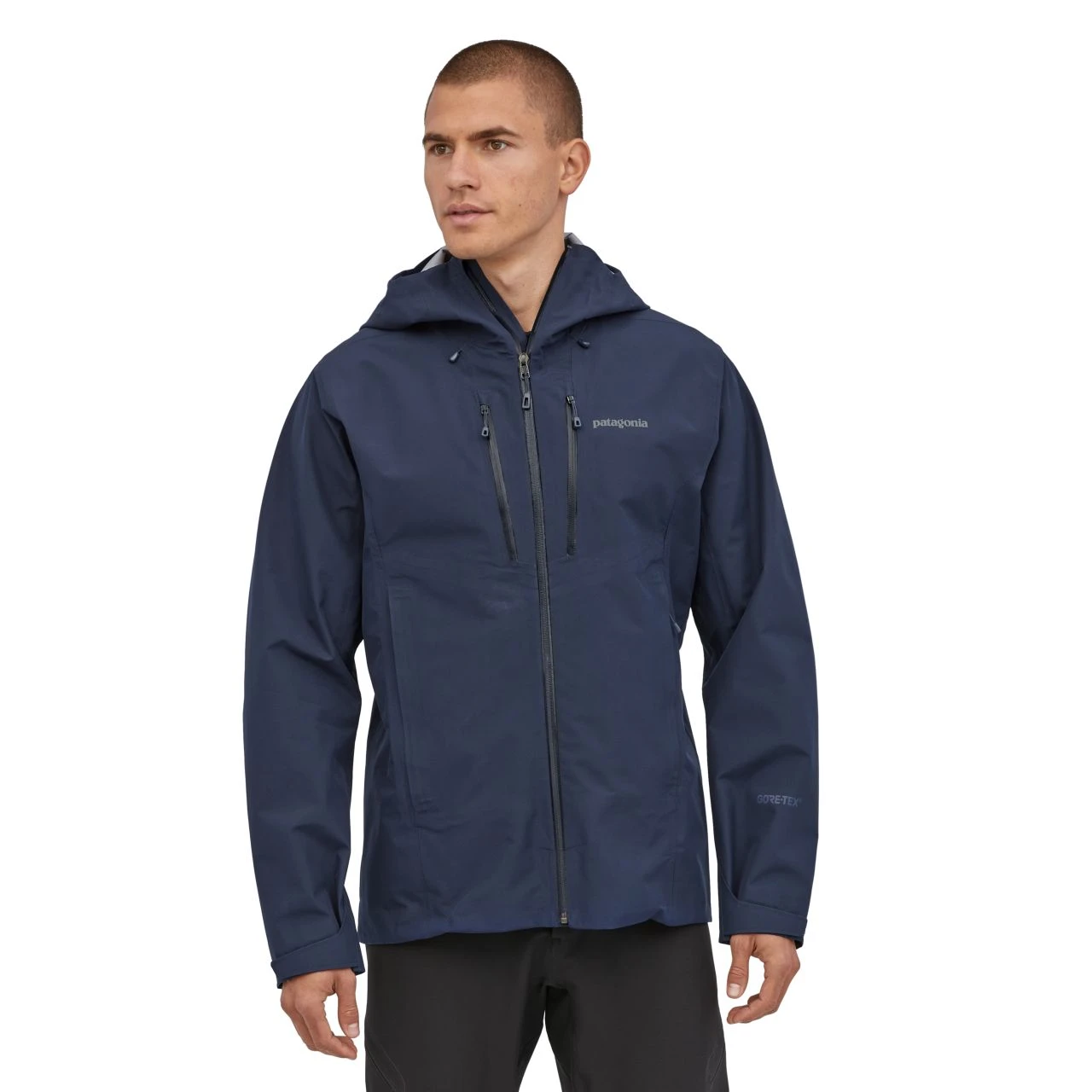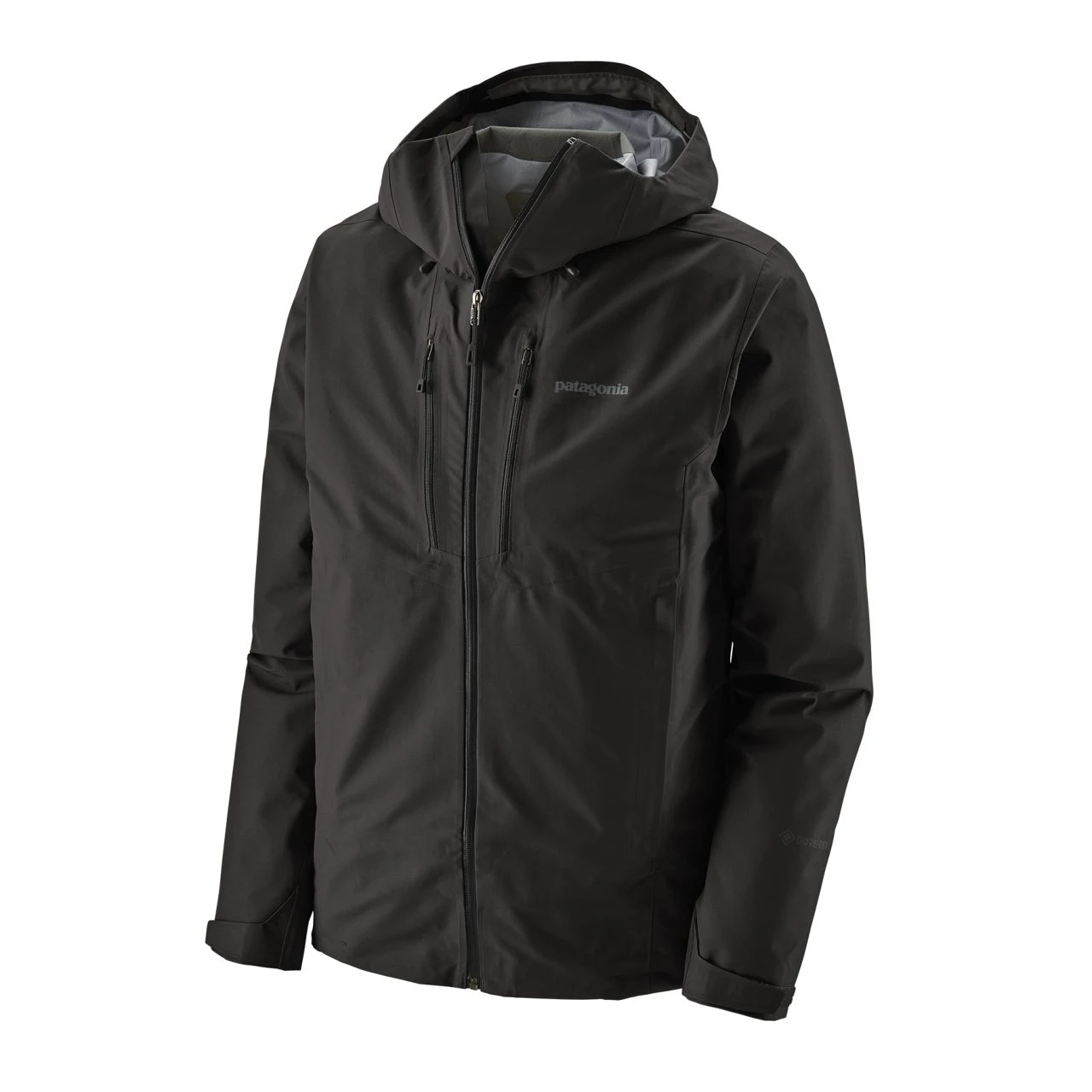 Born from tradition and infused with modernity, the Patagonia Triolet Jacket maintains its mountain focus the way a hard shell should: through heavy snow, driving wind and pouring rain. The 3-layer GORE-TEX® fabric features a waterproof/breathable membrane bonded between a robust inner lining and a durable polyester outer shell that’s now 100% recycled; a DWR (durable water repellent) finish further fends off wet weather. The helmet-compatible, 2-way-adjustable hood with a laminated visor blends protection with optimal visibility; traditional cord locks in the hood and hem allow for quick adjustment; an interior stretch mesh catch-all pocket stashes gloves or a hat; two Napoleon chest pockets and two handwarmer pockets stay clear of harness and pack lines. Other detailing includes low-bulk, watertight, coated zippers on the pit zips and external pockets; low-profile cuff closures; full-reach gusseted underarm panels for mobility; and an elasticized pant attachment strap at the inside lower back to eliminate gaps on powder days. Now with a concealed RECCO® reflector.