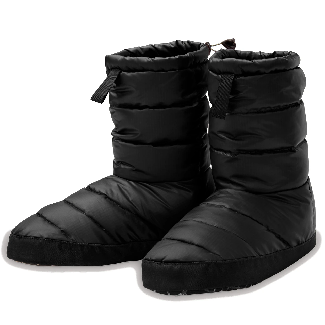 The Sierra Designs Down Booties are nine ounces of DriDown™ goodness wrapped around your feet. Made with a tricot liner and durable recycled polyester taffeta that cinches at the cuff to seal out drafts, these booties are like bringing your favorite house slippers to the hut, the campsite or on errands around town. And with a non-slip silicone sole, PFC-free Durable Water Repellent (DWR) coating and a foam midsole to support your weight, they’re sturdy and substantial for impromptu wanderings, inside or out.