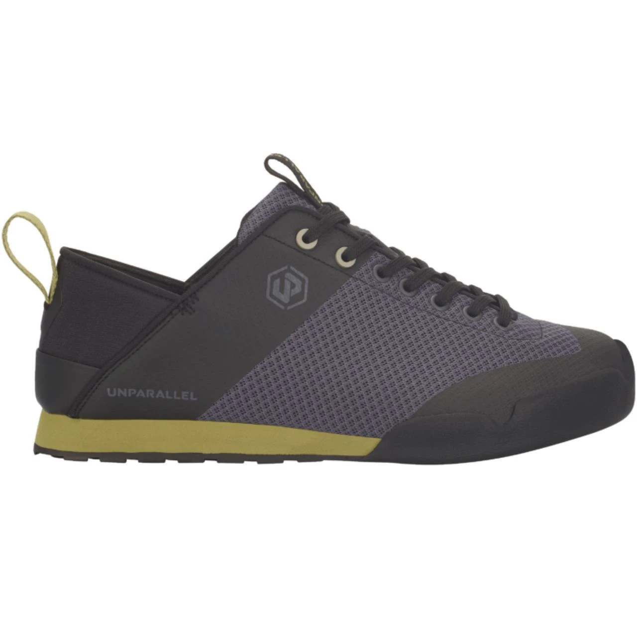 Designed as a lightweight, indoor climbing & lifestyle shoe, the L5 UP has become the route setter’s best friend. Its easy-on, easy-off access makes it a go-to when setting is abundant and time isn’t. Its state-of-the-art construction pushes the envelope of technology by utilizing Unparallel’s RH rubber formula for an outsole, combined with a manufacturing process that extends this sole into a low-profile toe rand, wrapping and protecting the forefoot. The L5 UP is a lightweight shoe built on a cushy, dual-density EVA midsole, with a synthetic, microfiber mesh upper, boasting an exceptional durability-to-breathability ratio for all-day comfort on or off the wall.
